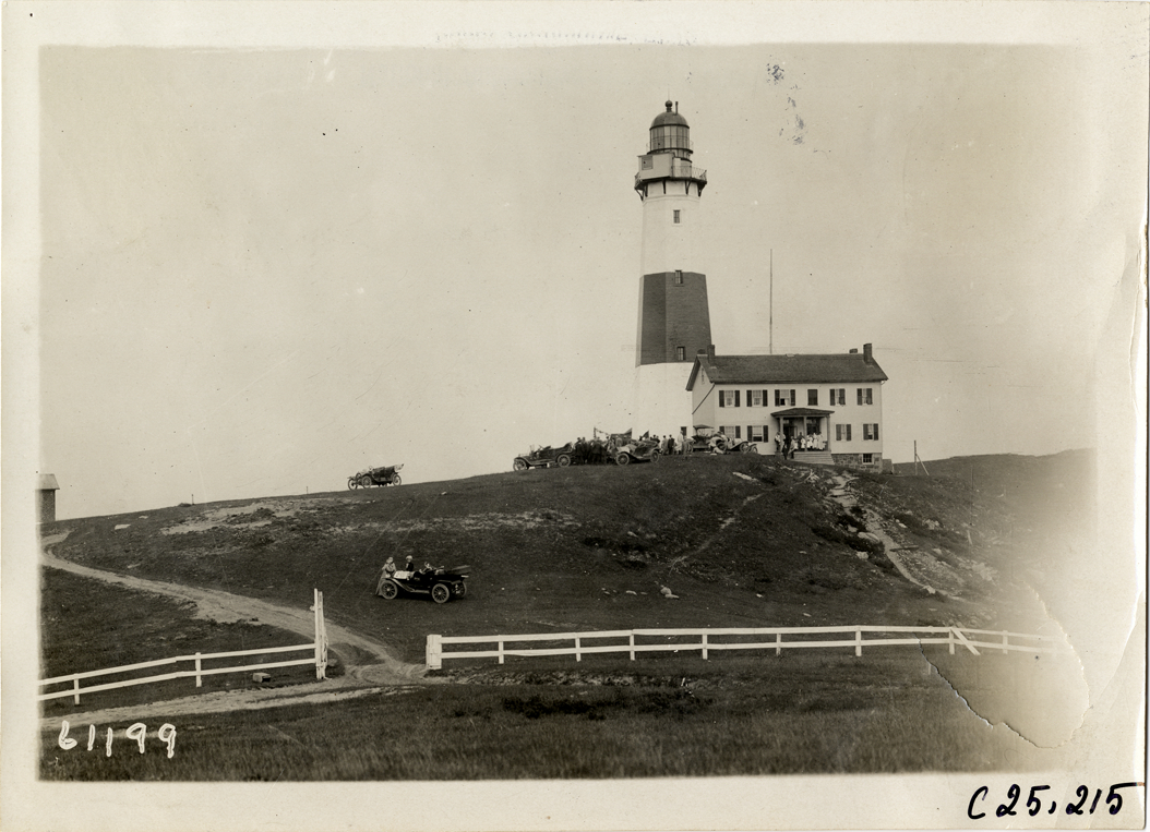 Location is the Montauk Point Lighthouse. Sometimge between 1910 and 1931 as the paved road to lighthouse is absent ( built in 1931)