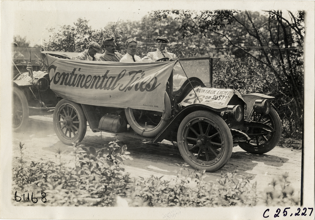 Fantastic Fotos, 114 years later! Clever to use the ‘Continental Tires’ banner lengthwise to help shield the dusty ride. I’d bet the course included Motor Parkway’s entire 45 mile length. After Ronkonkoma heading east towards the light, you’re on your own through 75 more miles of pristine and mostly undeveloped lands of early Long Island.