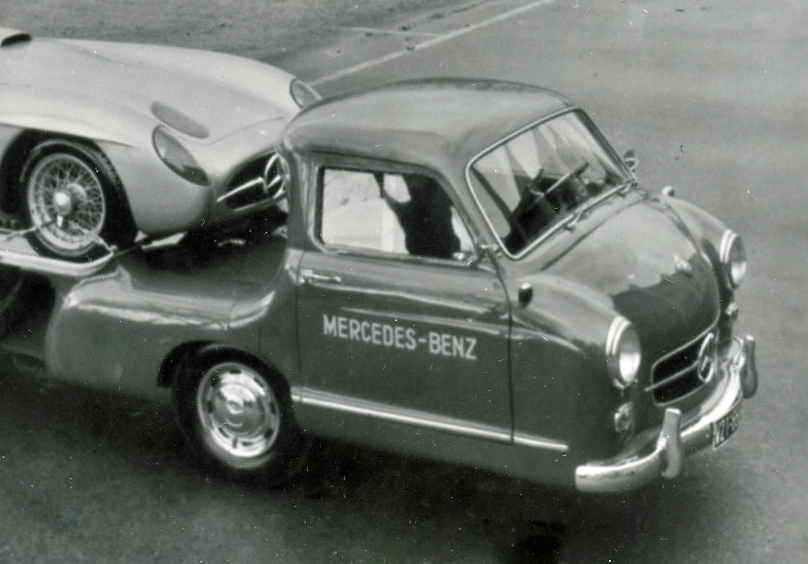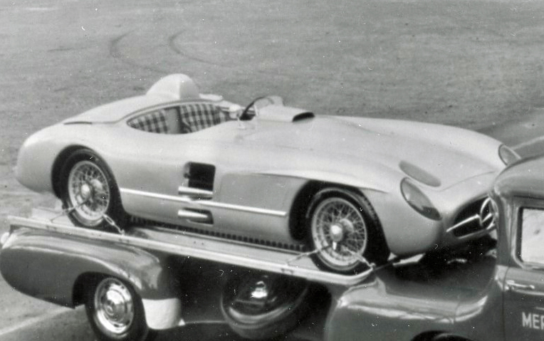 Mystery Friday Foto #23 Solved: A 1955 Mercedes-Benz 300 SLR W196S on top of the Mercedes-Benz “Blue Wonder” hauler