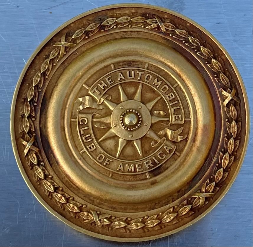 This 1 3/4 inch diameter gold medal was produced for The Automobile Club of America by Dieges & Clust.
