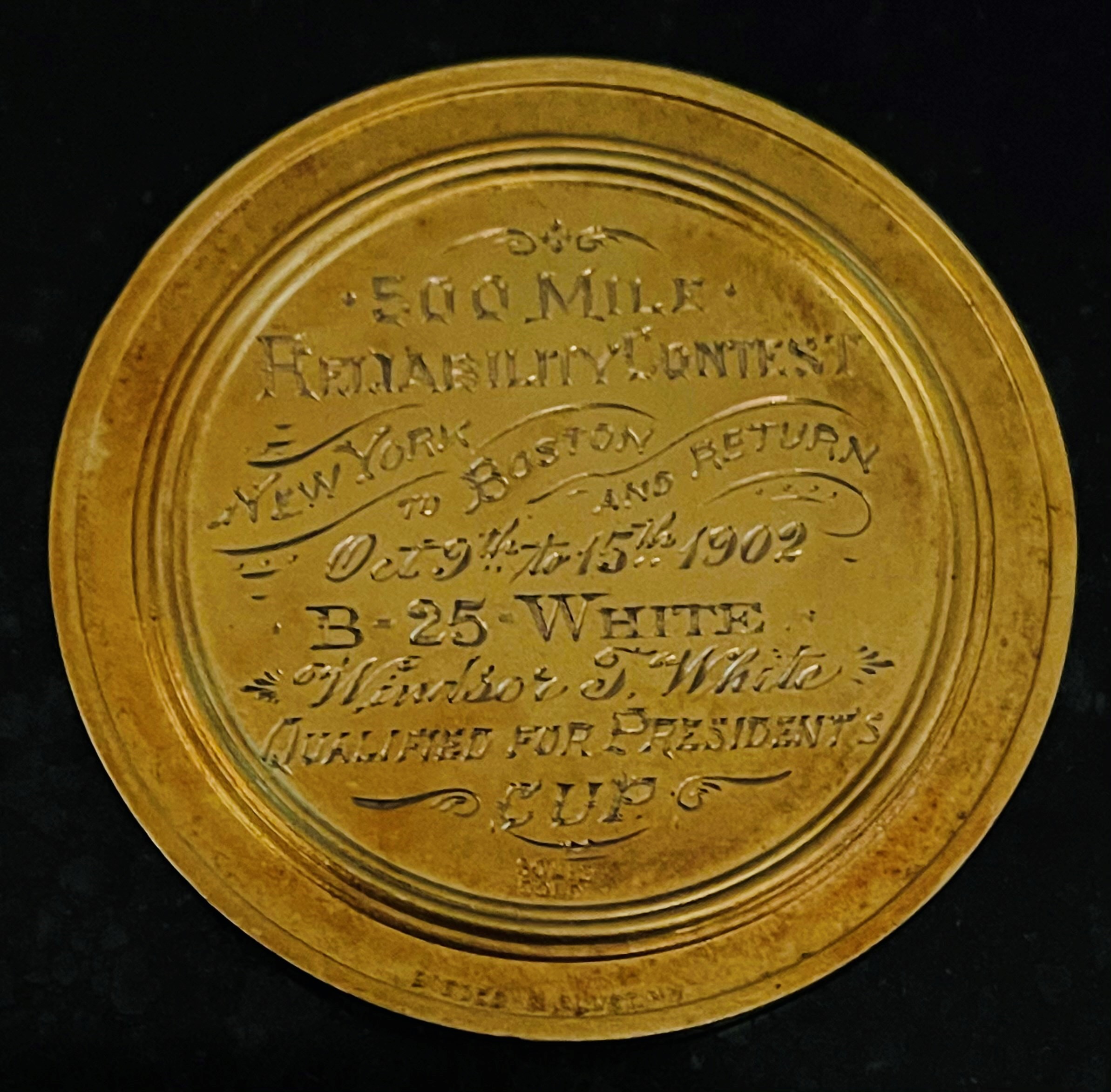 Mystery Foto #33 Solved: Windsor White’s gold medal from the 1902 500-mile Reliability Contest from NYC to Boston and return for the White Steamer