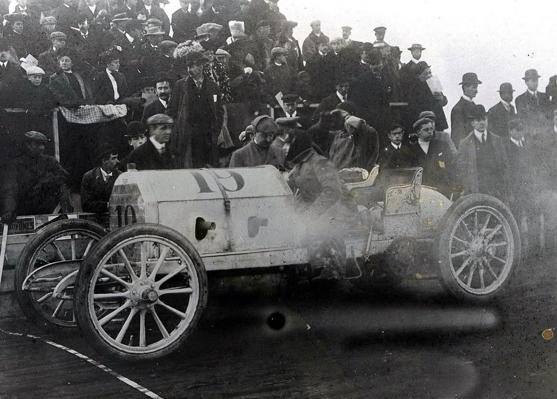 The #19 FIAT at the start/finish line in 1904.