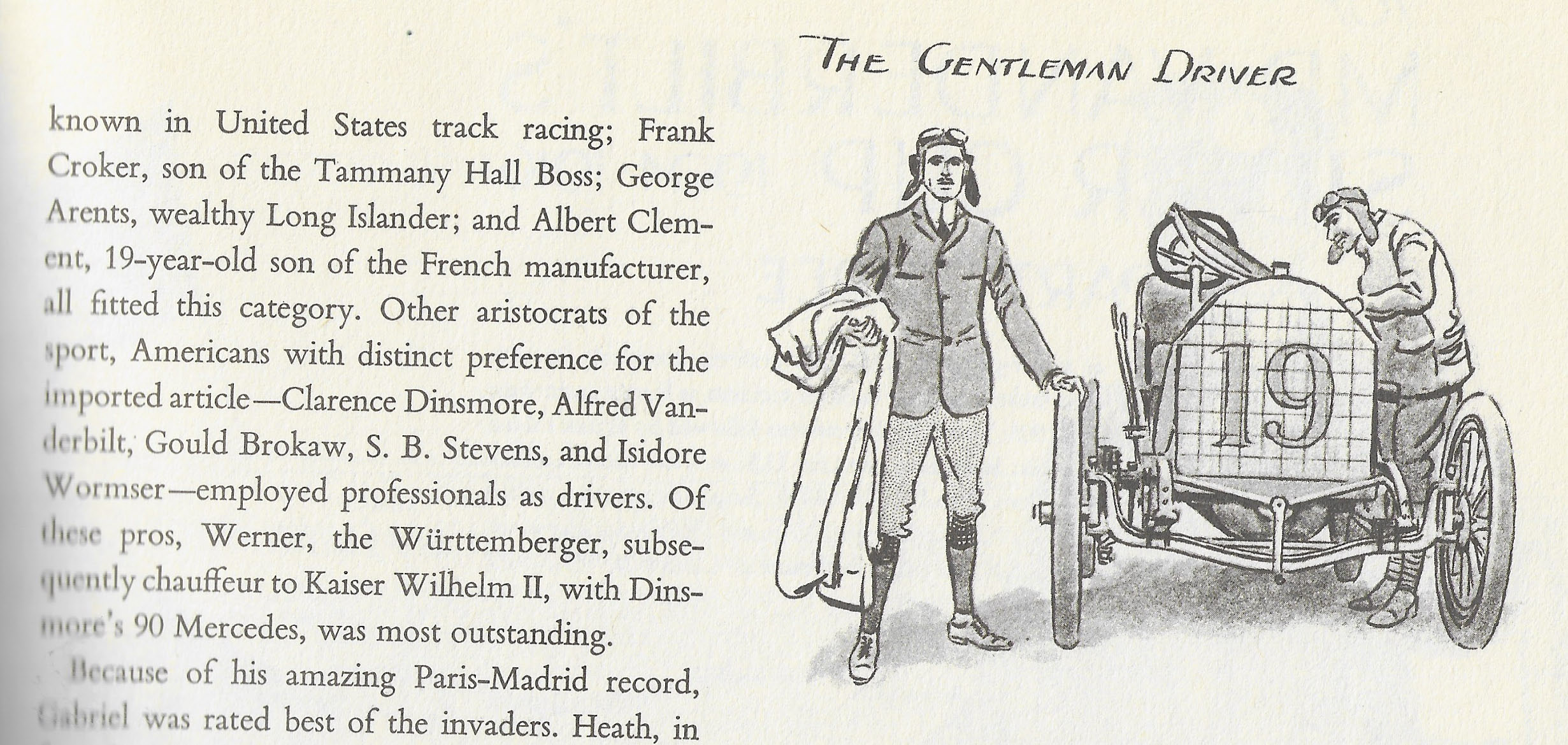 Ran out of research time this weekend so I’m going with some guesses. Could this be Foxhall Keene, who was not only an accomplished race car driver, but was also a champion polo player and proficient in equestrian riding, football, shooting, and tennis. And also a millionaire stock broker. Still guessing: the car could be Keene’s Mercedes racer with which he participated in the 1903 Gordon Bennett Cup but did not finish due to a broken axle.