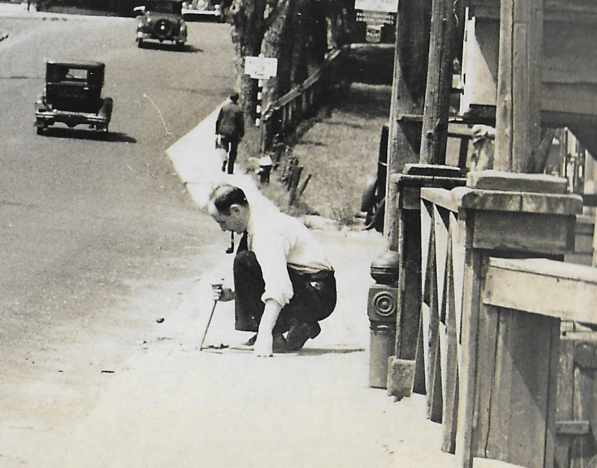 This is beautiful downtown Roslyn, looking west past the Roslyn Grist Mill that Howard is working so hard to restore. I’d guess it’s sometime in the 30’s judging by the cars. I have no idea what the guy with the long pipe is doing to the sidewalk. But the real reason I wanted to comment is to point out that the clock tower there in Roslyn looks very similar to a clock tower in Sharon, Connecticut. But when I googled the Connecticut clock tower I found the first entry was from the Roslyn Historical Society so I guess everyone knows about that tower.,