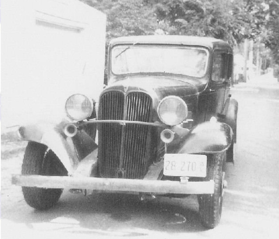 We are looking west on Old Northern Blvd. in Roslyn. I’m thinking the photo was taken in late 1931because the banner on the building in the background says “The New Ford, New In Every Way” which could mean the 1932 model that had many new features. That building started out life as a Lincoln dealership in 1926. The building on the right edge is the historic Roslyn Grist Mill. Owned by Nassau County, it is being restored by the Roslyn Landmark Society under the leadership of Howard, who is co-president and chairman of the executive committee. One of the cars looks like a 1930 Buick and there also could be a Ford Model-A.
