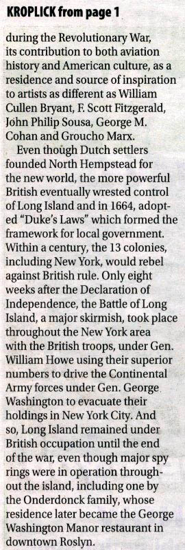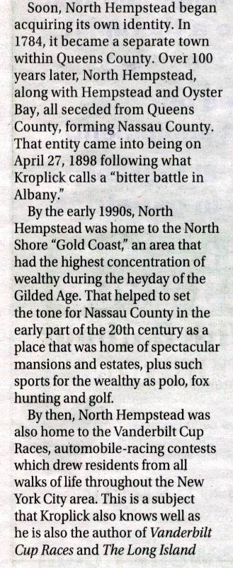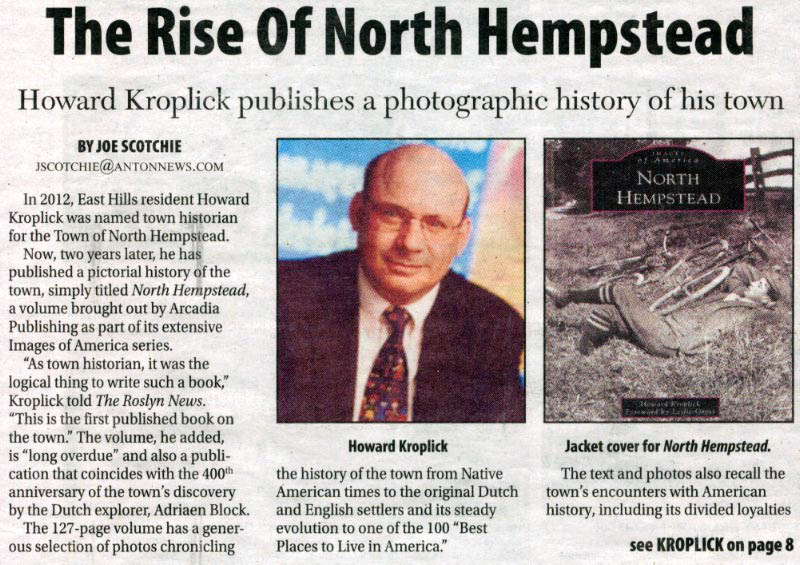 Joe Scotchie of the Roslyn News has written a wonderful summary of my new book North Hempstead.