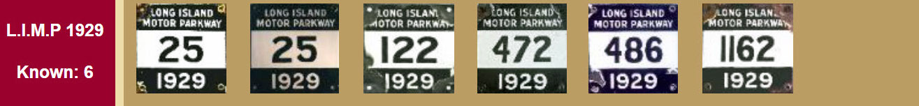 The definitive article on Long Island Motor Parkway license plates is the article The License Plates of the Vanderbilt Long Island Motor Parkway by my favorite co-author Al Velocci published in the Spring 2000 issue of the Long Island Forum.