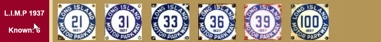 Below is the current database of the 93 plates: 75 plates listed on Eric Taylor's website page Long Island Motor Parkway Porcelain Census and 18 license plate jpegs submitted to VanderbiltCupRaces.com . This represents only 1.2% of the plates that were manufactured. Any thoughts on the fate of the missing 7,300 plates?