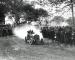 One of the stirring moments that built the legend of the Vanderbilt Cup Race occurred at the Hairpin Turn during the 1906 race. A spare tire and rim strapped to the back of the French #18 Lorraine-Dietrich broke loose and began to thrash the gas tank. Riding mechanician Franville clutched the heavy mounted tire and lost his balance. Just as the car skidded through the turn, the driver Arthur Duray handled the tight corner with one hand on the wheel while rescuing his assistant with his left arm.
