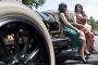 Photo credit: Charles Eckert | "Flappers" Alexandra Salvatore, left, and Kathleen Rose, right, pose for photographs with a 1909 Alco-6 Racer during the unveiling of a new tourism campaign celebrating the Roaring '20s on Long Island. (June 29, 2011)
