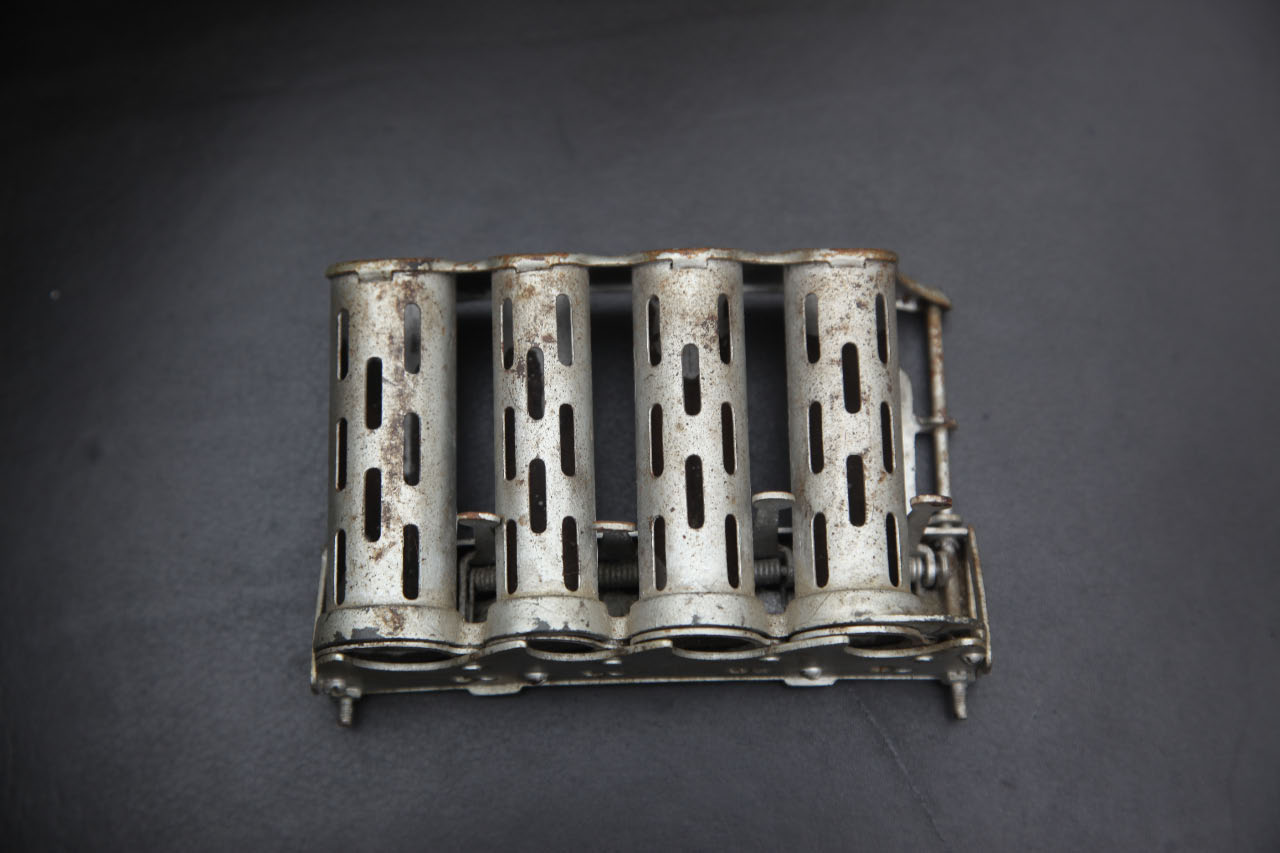 Barbara Russell brought this piece of Long Island Motor Parkway memorabilia given to her by Evelyn Ericson, daughter of the last Ronkonkoma Lodge gatekeeper Eric Ericson. The tag reads: "This Coin Changer Used by a Mr. Ericson at Ronk. toll station of Motor Parkway 1920's."