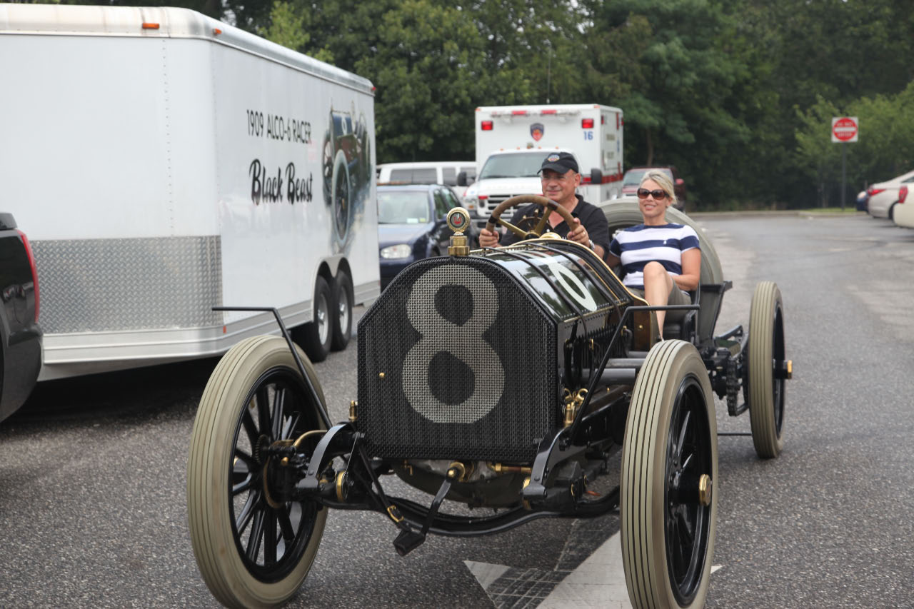 Stephanie Gress, Director of Curatorial Affairs for the Suffolk County Vanderbilt Museum, enjoys a ride in the Black Beast.
