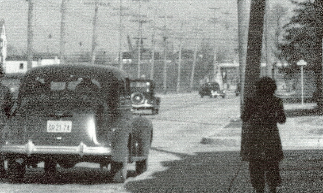 This 1930s collision occurred below the Merrick Avenue Motor Parkway Bridge in East Meadow. This view was to the south with the entrance to the parkway and the Meadow Brook Lodge beyond the bridge and to the right. The severity of any injuries are unknown.
