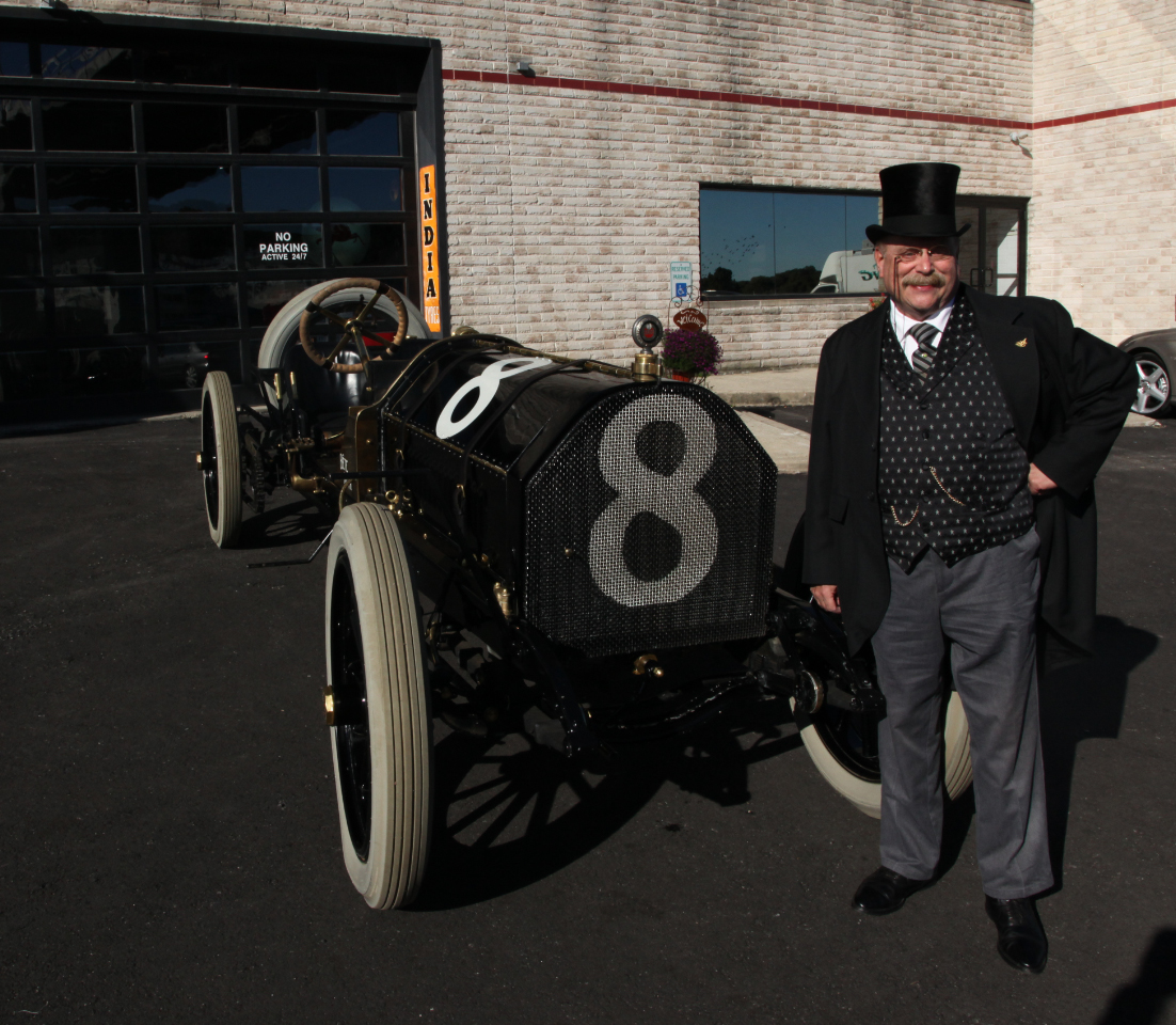Newsday photographer Jesse Newman taking a photo of "President Roosevelt" and the Black Beast. Newsday is developing an Explore LI cover article on the upcoming Vanderbilt Race Centennial Celebration at the Cradle of Aviation and the Festival Celebrating Theodore Roosevelt's 152nd Birthday at Sagamore Hill.