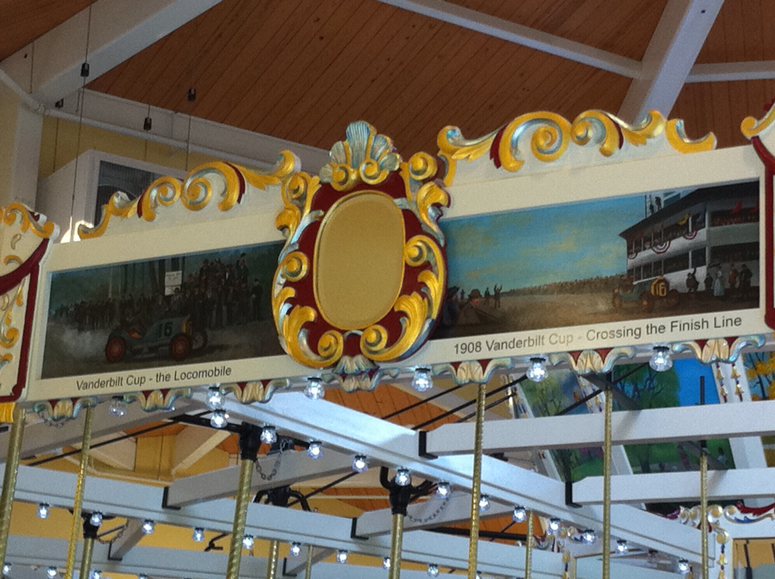 Two of the paintings on the carousel's rounding boards depicts scenes from the 1908 Vanderbilt Cup Race! Were they original to the 1912 carousel or part of the recent restoration?