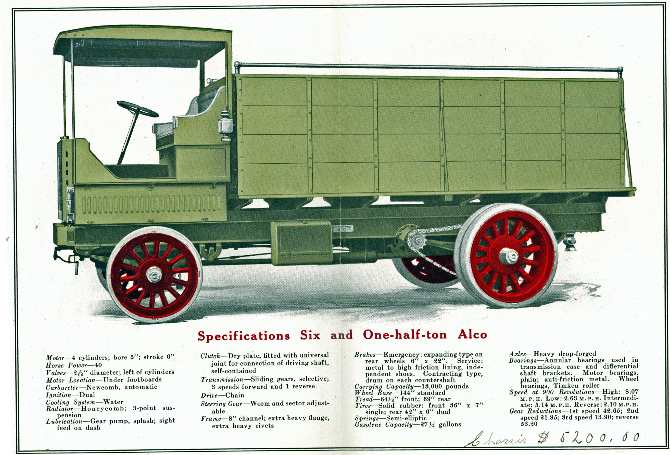 Alco made history in 1912 when a group of five men from the Charles W. Young Soap Company drove their 3.5-ton Alco 4,145 miles to record the first-ever transcontinental delivery by a truck. The group set out on June 20th from New York hauling a 3-ton payload of soap consigned to the Carlson Currier Company in Petaluna, California. Despite the absence of roads throughout their journey, the crew and truck made the trick in 91 days.